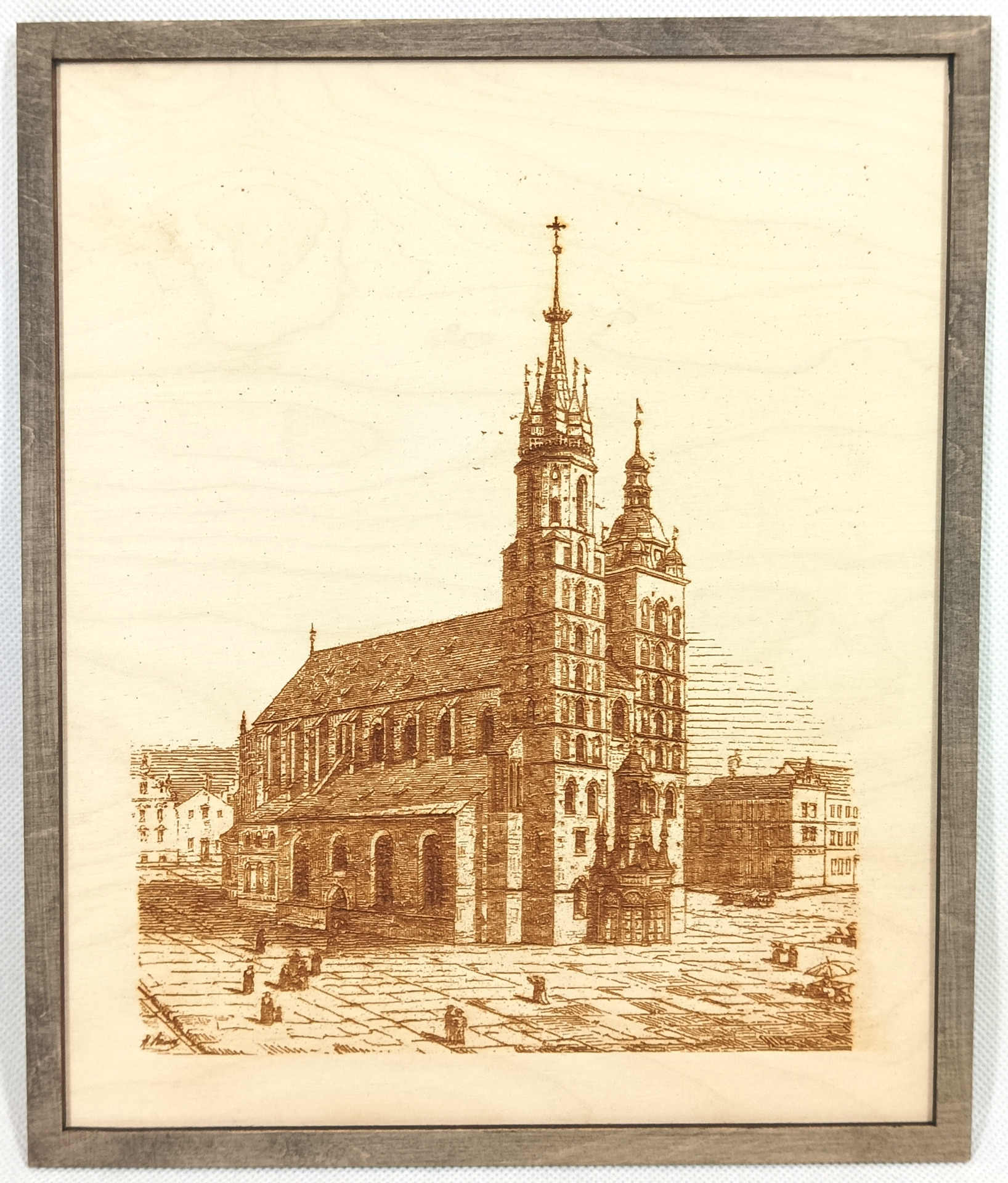 Obrazy wypalane laserem na drewnianej sklejce: Zabytki Krakowa